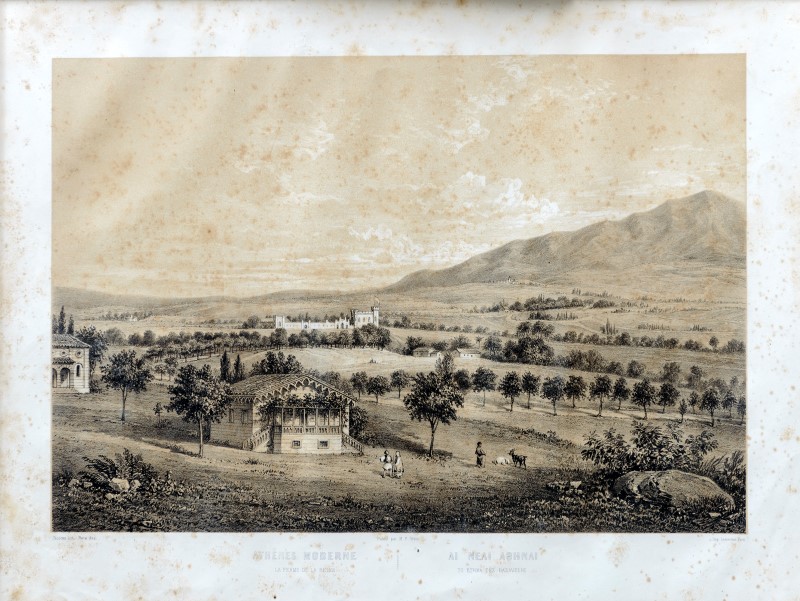 Before finishing the formation of the Royal Gardens, she decided to purchase a vast area of land in the north of Athens, near the contemporary municipality of Liosia. The rich valley of Kifisos river had an excellent climate. The estate of Ilion was originally a Turkish property( tsifliki), which was consecutively transferred to Greek owners and afterwards, to two English men, John Williams and George Myles, who planted grapevines and fruit trees, created farm plantations and built new , auxiliary spaces. The eventual area of the property reached the 250 hectares in 1861.