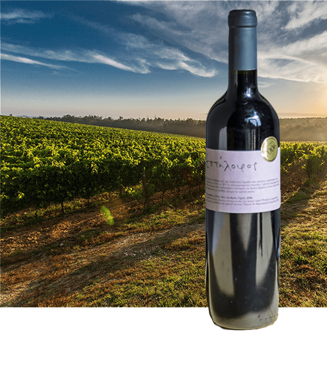 Το κρασί Επτάλοφος ερυθρός, προέρχεται από συνοινοποίηση των Cabernet Sauvignon και Merlot, παλαιώνει σε γαλλικά δρύινα βαρέλια, έως τριών χρήσεων, για 12 μήνες, και εν συνεχεία αφήνεται να ωριμάσει για 2 τουλάχιστον χρόνια στο υπόγειο κελάρι του οινοποιείου. Πρόκειται για ένα κρασί που μετά 10 έτη είναι ακόμη στο απόγειό του, όπως μας αποδεικνύουν οι φιάλες της εσοδείας 2006 που υπάρχουν και πωλούνται στο κτήμα.